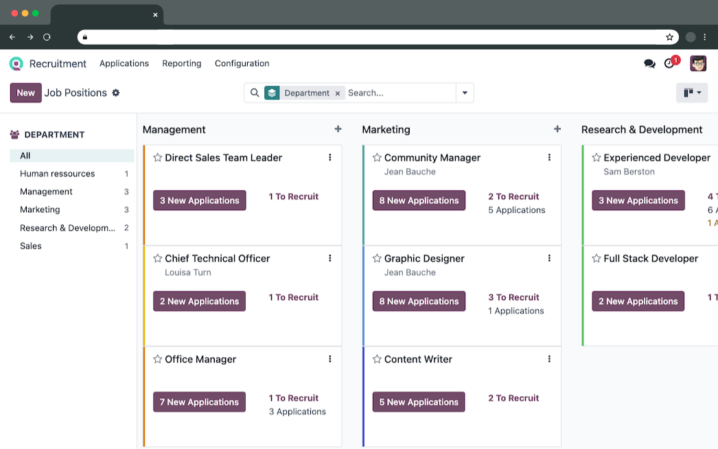 Odoo Recruitment streamlines your entire recruiting process, so you can find the best people for your team, quickly and easily.