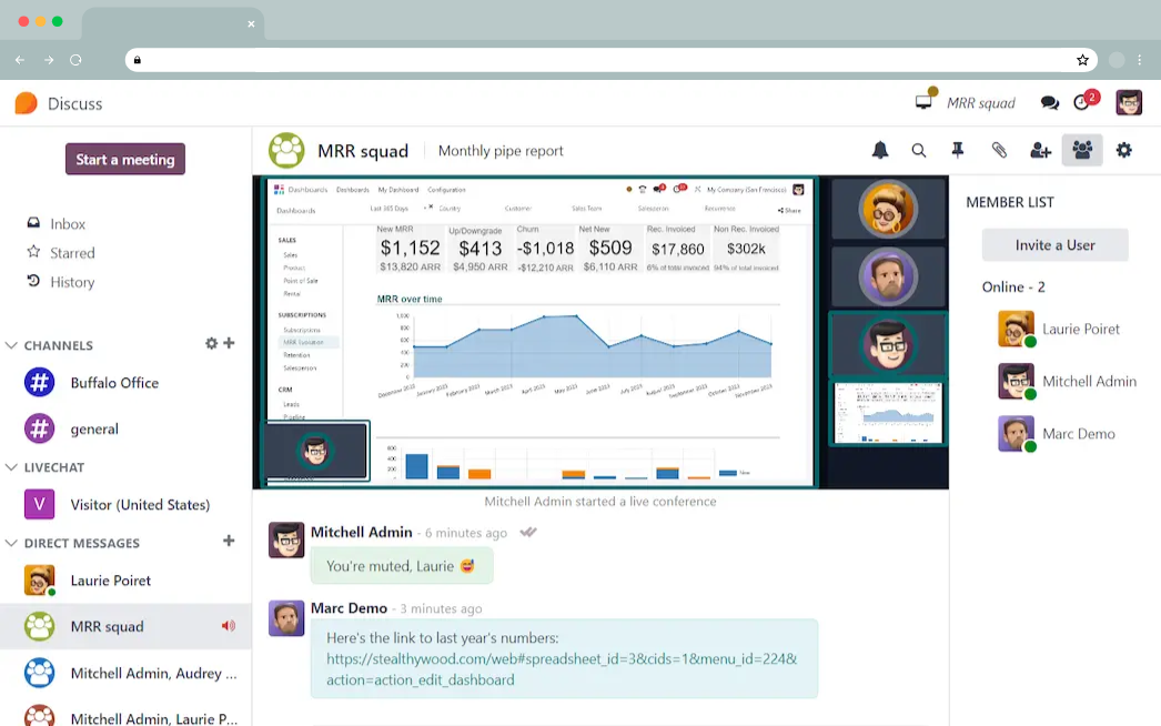 Experience high-definition, quality video conferencing with users and customers around the world to land that big whale of a sale in the Odoo Sales app.