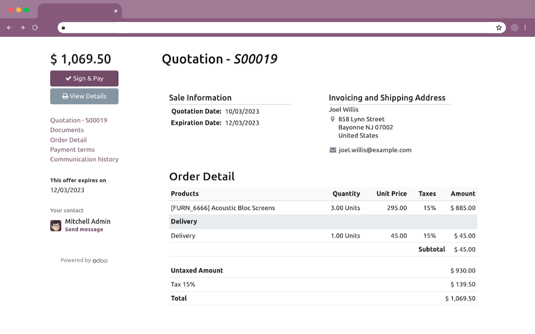 Create clean, professional, and interactive quotations instantly with Odoo's powerful quotation builder.