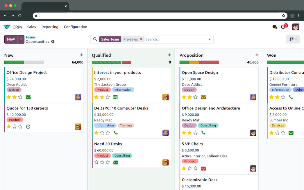 Odoo CRM is the true customer-centric tool for your sales needs. Track leads, get accurate forecasts, and focus on what matters: closing opportunities.