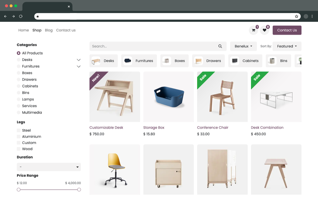 No matter what you need for your website Odoo has you covered offering modules in Website building, eCommerce, Blogs, Forums, Live chat, and eLearning.